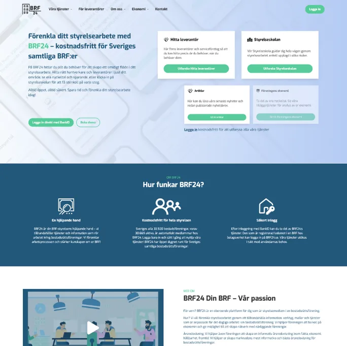 BRF24 ville nå ut mer till bostadsrättsföreningar genom en hemsida där både styrelseledamot och leverantörer kan spara tid och förenkla styrelsearbetet. BRF24 även utvecklas löpande utifrån medlemmarnas behov och ska vara ett tryggt verktyg i styrelsens vardag.